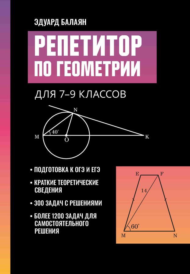Предлагаемая книга написана на основе действующей программы по геометрии для 7-9 классов общеобразовательных школ, гимназий, лицеев. Она содержит более 1500 задач, из которых 300 даны с подробными решениями и обоснованиями. Задачный материал дан на готовых чертежах и разбит на две части: "Б" - базовый и "П" - профильный уровни. Для удобства пользования книгой приводятся краткие теоретические сведения по курсу планиметрии, сопровождаемые определениями, теоремами, основными свойствами и необходимыми справочными материалами. Каждый параграф содержит образцы решения задач и задачи для самостоятельного решения. В конце книги приводятся ответы ко всем задачам на вычисление. Репетитор предназначен для самостоятельной подготовки к ОГЭ, ЕГЭ, а также к урокам геометрии. Рекомендован старшеклассникам и абитуриентам общеобразовательных школ, гимназий, лицеев, а также студентам педвузов и репетиторам.