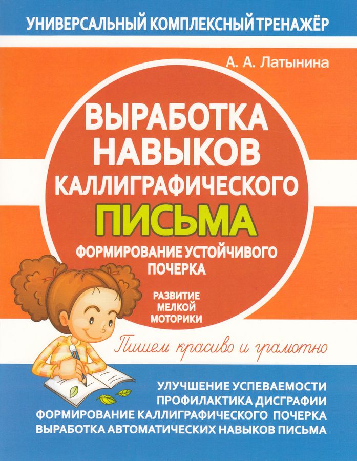 Тетрадь-тренажер «Выработка навыков каллиграфического письма» способствует: • формированию устойчивого почерка; • развитию мелкой моторики; • улучшению успеваемости; • профилактике дисграфии; • формированию каллиграфического почерка; • выработке автоматических навыков письма.