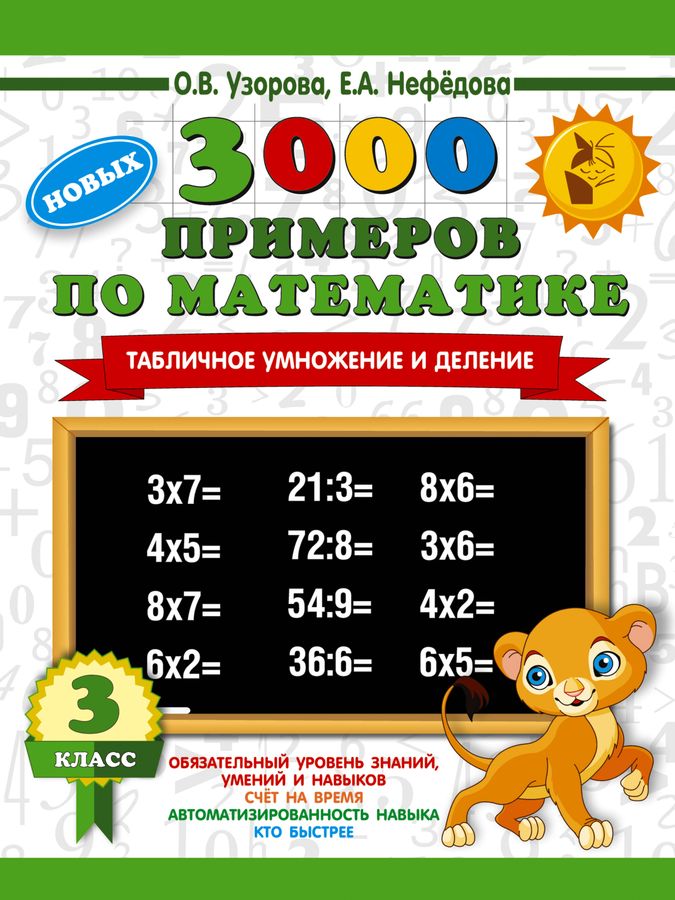 Пособие содержит 3000 примеров по математике. Тема "Табличное умножение и деление" – одна из базовых тем, изучаемых в третьем классе. Как и любая другая, она требует внимательного осмысления и хорошего закрепления. Как показывает практика, ученик полностью освоил тему, если решает пример и записывает ответ в течение 4–7 секунд. В этом случае можно говорить, что навык счета доведен до автоматизма. На каждой странице приведены 7 столбиков по 38 примеров каждый. В конце столбика записывается время, потраченное учеником на решение. В левом нижнем углу обозначены контрольные цифры: идеальное время решения одного столбика, удовлетворительное и результат, который должен заставить ученика задуматься. Учителю сложно проверить такое большое количество примеров, поэтому лучше, если время, затраченное на решение каждого столбика, отметят взрослые дома. Чтобы достичь хороших результатов, каждый день нужно решать по одной странице. Пособие можно использовать в качестве дополнительного материала на уроках математики, а также для работы дома.
