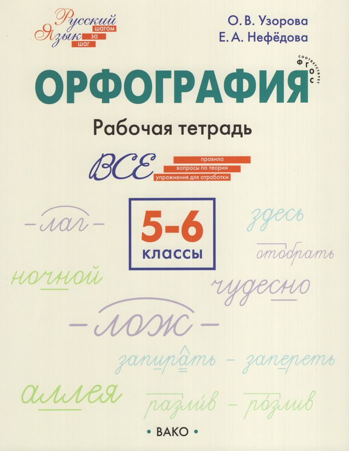 В пособии представлены основные орфограммы, изучаемые в 5–6‑х классах на уроках русского языка. Удобная структура книги позволит быстро находить необходимые темы. Предлагаемый материал поможет ученикам начать качественную подготовку к ОГЭ и ЕГЭ по русскому языку. В конце пособия приведены ответы ко всем заданиям. Пособие составлено в соответствии с требованиями ФГОС основного общего образования. Предназначается учителям, ученикам и их родителям.