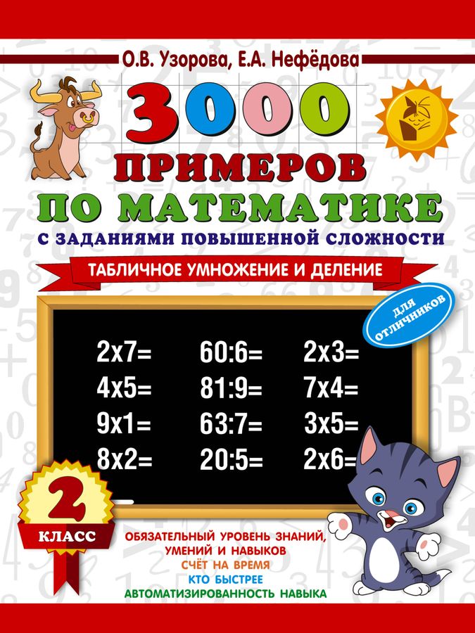 Пособие содержит 3000 математических примеров по теме "Табличное умножение и деление". Оригинальное построение материала позволяет обеспечить более глубокое его усвоение. Как показывает практика, ученик полностью освоил программу, если решает и записывает ответ по истечении 4-7 секунд. В этом случае можно говорить, что навык счёта доведён до автоматизма. На каждой странице приведены 5-7 столбиков в среднем по 52 примера. В конце столбика записывается время. В нижнем левом углу обозначены контрольные цифры: идеальное время решения одного столбика, удовлетворительное и результат, который должен заставить ученика задуматься. Чтобы достичь отличных результатов, каждый день следует решать по одной странице. Для учеников, раньше остальных выполнивших задание, а также для максимально эффективного усвоения темы в конце каждой страницы даны усложненные задания — "бонусы". Пособие может быть использовано на уроках математики, а также для работы дома.