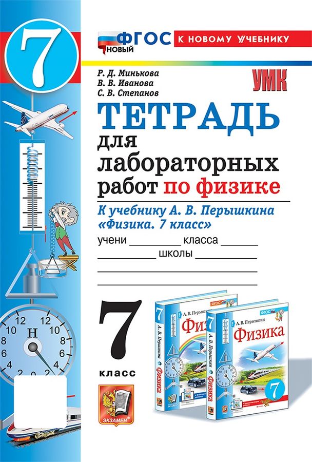 Данное пособие полностью соответствует федеральному государственному образовательному стандарту. Тетрадь для лабораторных работ предназначена для изучающих физику по учебнику А. В. Перышкина "Физика. 7 класс". В каждой работе указаны цели ее проведения, необходимое оборудование, приведено описание хода работы с рисунками, таблицами и расчетными формулами. В описание лабораторных работ добавлены контрольные вопросы. Звездочкой помечены вопросы повышенной сложности. Часть стандартных лабораторных работ содержат дополнительные задания. В скобках указываются номера, соответствующие учебникам 2021-2022 гг. (если они не совпадают с номерами в учебнике 2023 г.), а также материалы, отсутствующие в учебниках 2021-2022 гг.