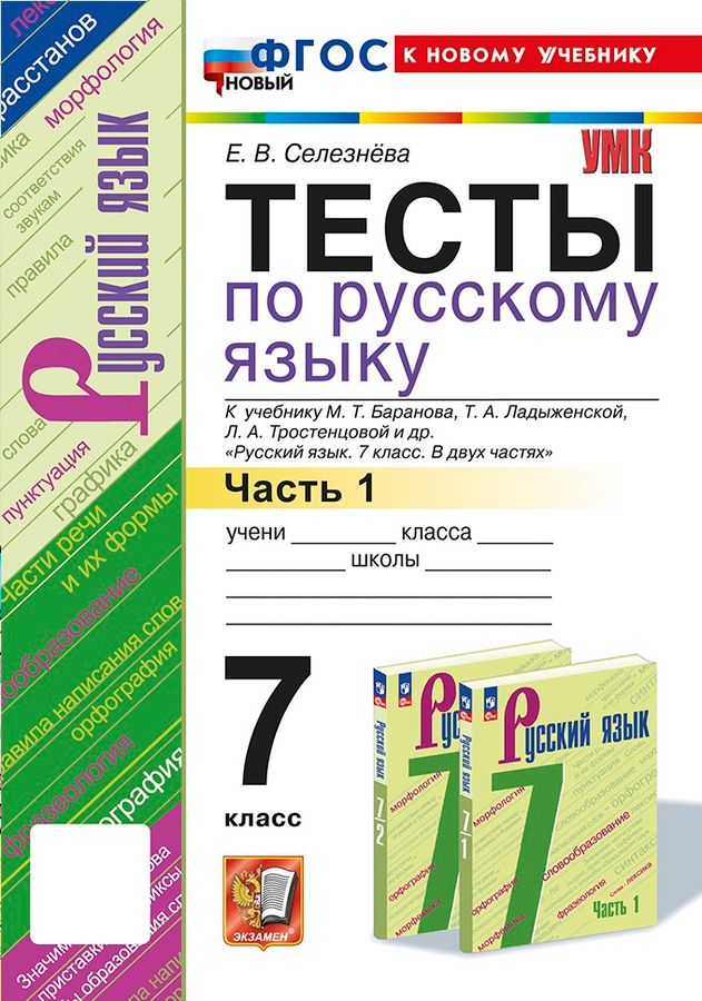 Данное пособие полностью соответствует федеральному государственному образовательному стандарту. Предлагаемое учебное пособие содержит тестовые задания по русскому языку для 7 класса. Комплексы тренировочных тестов сгруппированы по разделам учебника М. Т. Баранова и др. "Русский язык. 7 класс. В двух частях". Пособие позволяет как проверить знания семиклассников, так и совершенствовать практические умения, связанные с анализом различных языковых явлений. Издание предназначено учащимся, учителям, родителям. Ко всем тестам даны ответы.