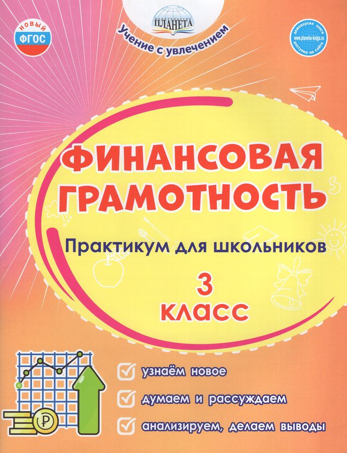 Финансовая грамотность для младших школьников - это те знания, умения и навыки, которые необходимы им для принятия разумных финансовых решений. В начальной школе работа по финансовой грамотности носит в основном пропедевтический характер. Учащиеся знакомятся с понятиям и: деньги, товар, цена, доход, обязательные и необязательные платежи, стоимость коммунальных услуг и т.д. У школьников формируются: общее представление об экономике; понимание, откуда берутся деньги и на что они тратятся; умение экономить и правильно распределять карманные деньги. В данной книге представлены 28 практических работ для учеников З класса. Выполняя задания, школьники решают реальные житейские задачи по планированию покупок: расчёт имеющейся суммы и сопоставление этой суммы со списком того, что надо купить; выбор наиболее оптимальных покупок (умение выбирать необходимые покупки и предотвращать лишние траты) и т.д. Решение таких практических задач в начальной школе позволяет повысить в глазах ребёнка ценность не просто образования, а конкретно обучения в школе. Практикум полностью соответствует обновлённому ФГОС НОО и предназначен учащимся третьего класса и их родителям, учителям начальной школы, педагогам дополнительного образования.