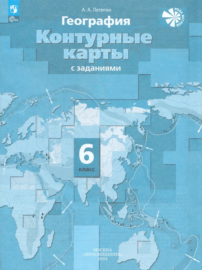 Контурные карты с заданиями География 6 класс Просвещение 2024 год Серия Роза ветров Автор Летягин А. А. Политическое устройство мира отражено на картах по состоянию на октябрь 2022 г.