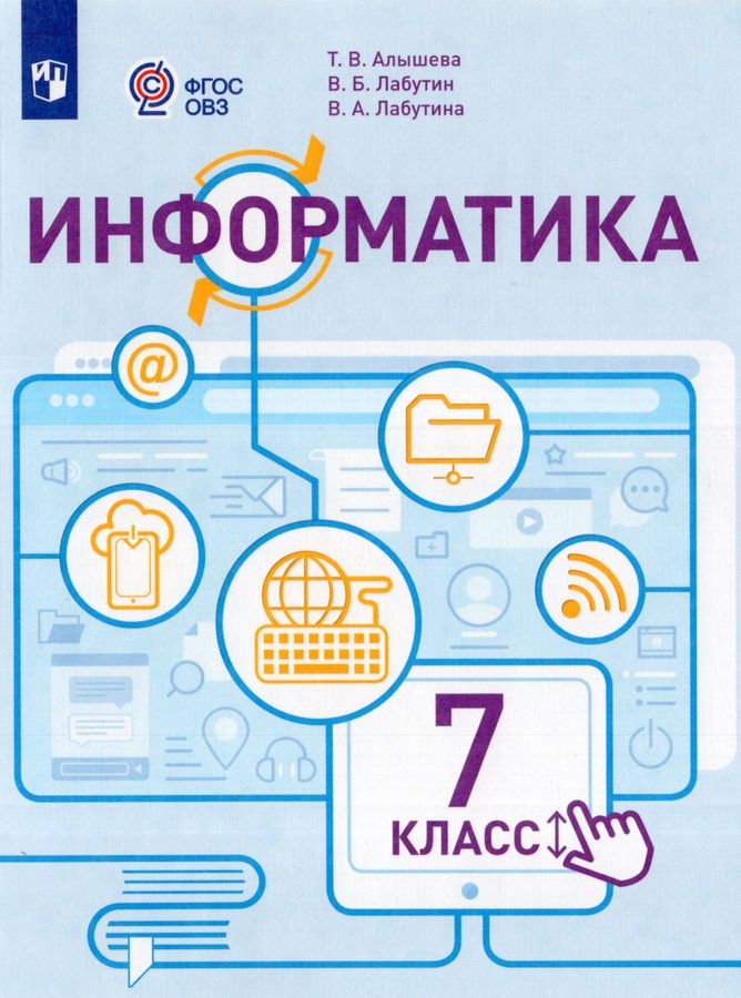 Учебник Информатика 7 класс Просвещение 2024 год Авторы Алышева Т.В., Лабутин В.Б., Лабутина В.А. Учебник предназначен для детей с ограниченными возможностями здоровья и обеспечивает реализацию требований адаптированной основной общеобразовательной программы по учебному предмету «Информатика», входящему в предметную область «Математика», в соответствии с требованиями ФГОС образования обучающихся с интеллектуальными нарушениями. Содержание учебника направлено на формирование у обучающихся первичных элементарных представлений, знаний и умений об информации и действиях с ней с применением компьютера и ИКТ. Предусмотрено ознакомление с графическим и текстовым редакторами, сетью Интернет, правилами безопасной работы. В конце каждой темы даны проверочные задания; в конце крупных разделов — контрольные задания по двум уровням (минимальному и достаточному). Данное издание является первым.
