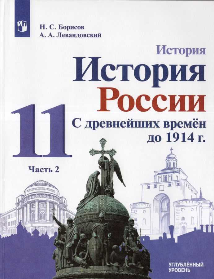 Учебник История России с древнейших времён до 1914 г 11 класс Часть 2 ФП22 Просвещение 2024 год УМК Левандовский А.А. Авторы Борисов Н.С., Левандовский А.А. Учебник создан на основе требований Федерального государственного образовательного стандарта среднего общего образования, Концепции нового учебно-методического комплекса по отечественной истории и Историко-культурного стандарта. Данное издание представляет собой повторительно-обобщающий курс по истории России с древнейших времён до начала ХХ в. Он нацелен на осмысление и применение ранее полученных знаний и умений, а также подготовку к итоговой аттестации. Авторы — известные российские историки, преподаватели МГУ им. М. В. Ломоносова — первостепенное внимание уделяют ключевым событиям и явлениям российской истории. Методический аппарат пособия нацелен на активные формы усвоения материала, в том числе с использованием информационных технологий. Учебник соответствует Концепции преподавания учебного курса "История России" в образовательных организациях Российской Федерации, реализующих основные общеобразовательные программы. Учебник выходит в двух частях.
