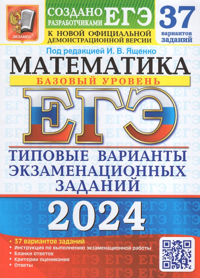ЕГЭ 2024. Математика. Базовый уровень. 37 вариантов. Типовые варианты экзаменационных заданий 2024 | Забелин А.В., Ященко И.В., Антропов А.В., Высоцкий И.Р., Сопрунова Н.А., Шноль Д.Э.