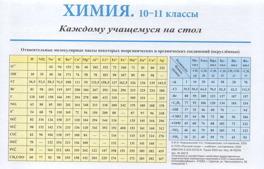 Химия. 10-11 классы. Справочный материал 2024 | Новошинский И.И., Новошинская Н.С.