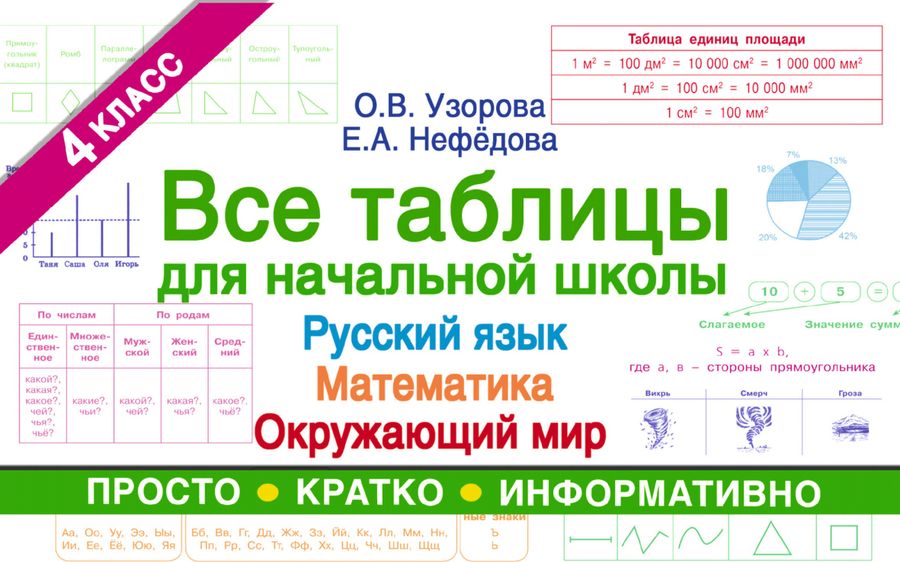 В учебном пособии известных педагогов О.В. Узоровой, Е.А. Нефёдовой базовый материал по русскому языку, математике и окружающему миру для учащихся 4 класса представлен в виде таблиц и схем. Занимаясь по этой книге, школьники смогут выучить и запомнить самые важные сведения по основным предметам начальной школы. Для начального образования.