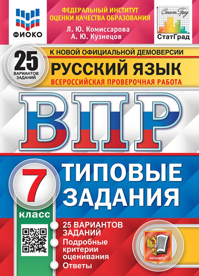 Данное пособие полностью соответствует федеральному государственному образовательному стандарту (второго поколения). Книга содержит 25 вариантов типовых заданий Всероссийской проверочной работы (ВПР) по русскому языку для учащихся 7-х классов. Сборник предназначен учащимся 7-х классов, учителям и методистам, использующим типовые задания для подготовки к Всероссийской проверочной работе по русскому языку. Приказом № 699 Министерства образования и науки Российской Федерации учебные пособия издательства "Экзамен" допущены к использованию в общеобразовательных организациях.