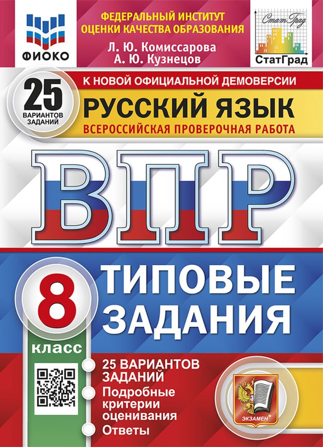 Данное пособие полностью соответствует федеральному государственному образовательному стандарту (второго поколения). Книга содержит 25 вариантов типовых заданий Всероссийской проверочной работы (ВПР) по русскому языку для учащихся 8-х классов. Сборник предназначен учащимся, учителям и методистам, использующим типовые задания для подготовки к Всероссийской проверочной работе по русскому языку. Приказом №699 Министерства образования и науки Российской Федерации учебные пособия издательства "Экзамен" допущены к использованию в общеобразовательных организациях.