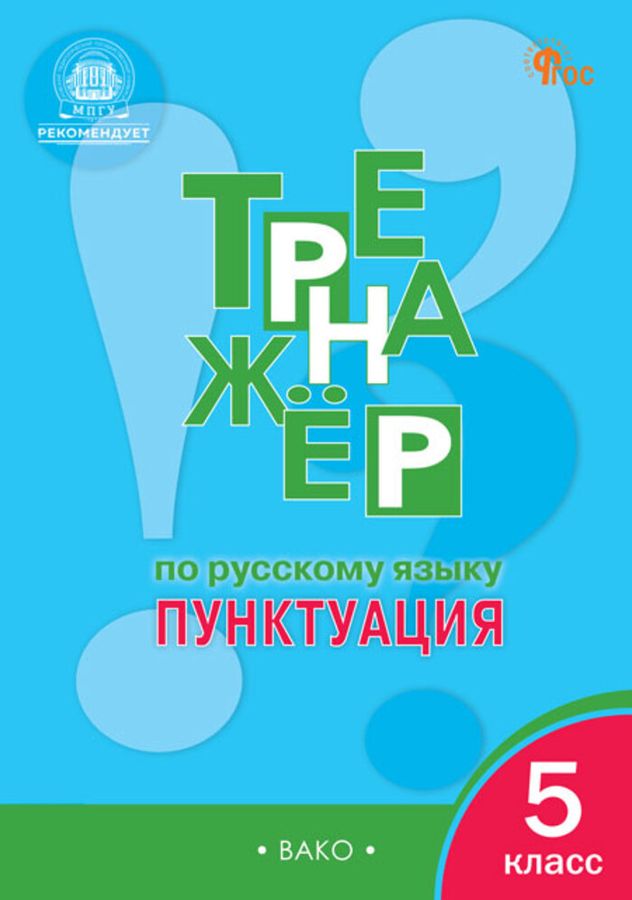 Пособие представляет собой сборник упражнений по пунктуации для 5 класса, составленный в соответствии с требованиями действующего ФГОС ООО. Тренажёр может использоваться при обучении по любым учебникам и пособиям, входящим в федеральный перечень учебных изданий. Методические рекомендации, примеры выполнения заданий и ответы к заданиям можно найти в электронной книге «Методические рекомендации и ответы к тренажёру по русскому языку: пунктуация. 5 класс», которая выпускается издательством «ВАКО» в электронном виде. Предназначается для закрепления изученного материала на уроках русского языка, а также для дополнительных занятий с учащимися 5 класса дома.